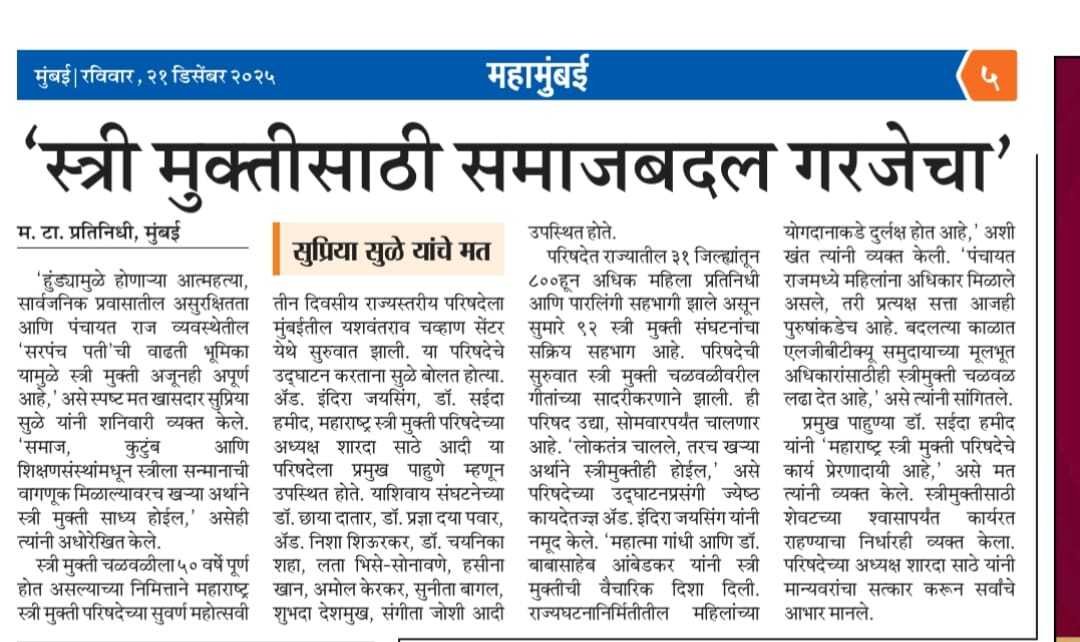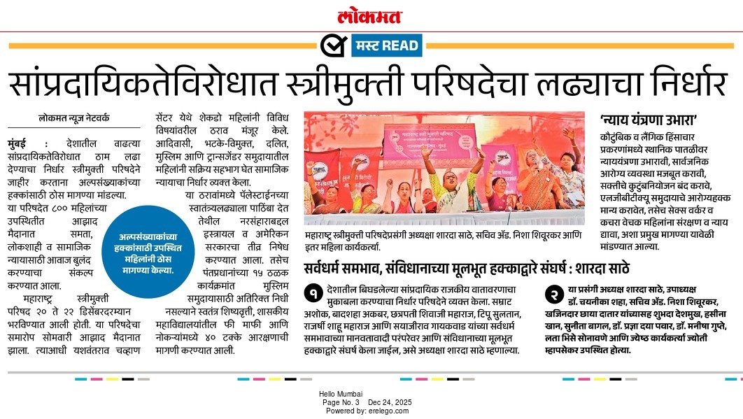 MSMP organised a three-day State-Level Conference to commemorate 50 years of the Women’s Movement during Mumbai’s peak election season.